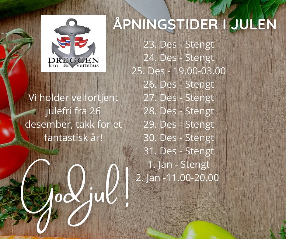 Mandag - Tirsdag: Stengt, med unntak av Veterantreff